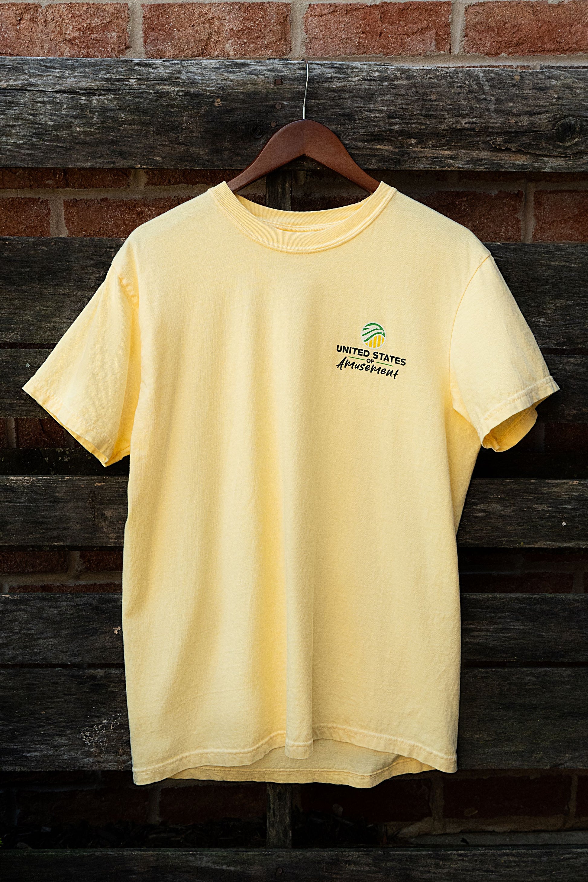 Grandson sent Pic and link said this is the best tee shirt he's ever seen. got it for xmas he doesn't know I got it at 12 he is a roller coaster expert how long how high how many turns etc for every coaster in the world I know he will love it he really doesn't like green but the butter color was to light for kid so only choice was spruce green wish had more colors to pick from
